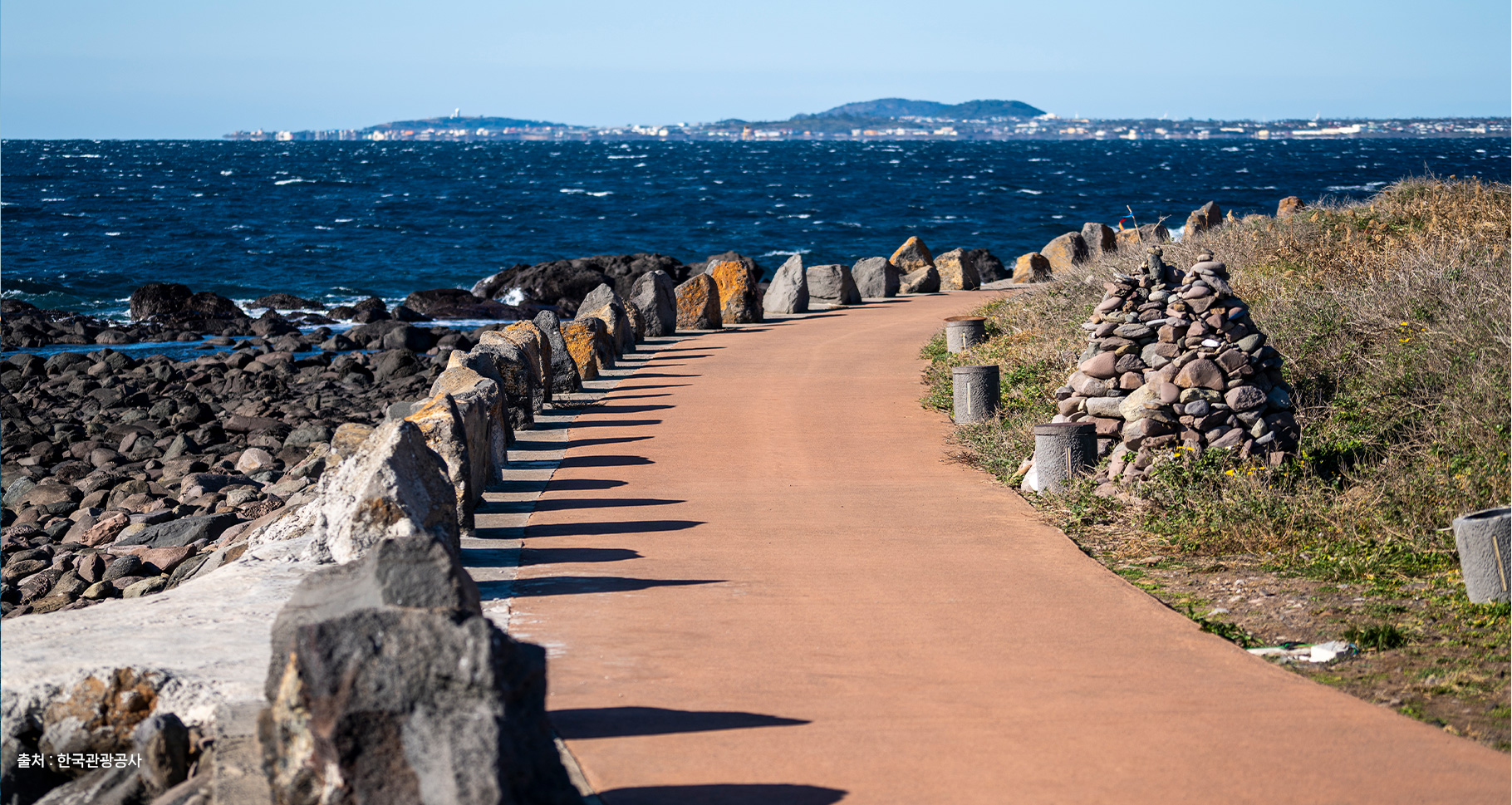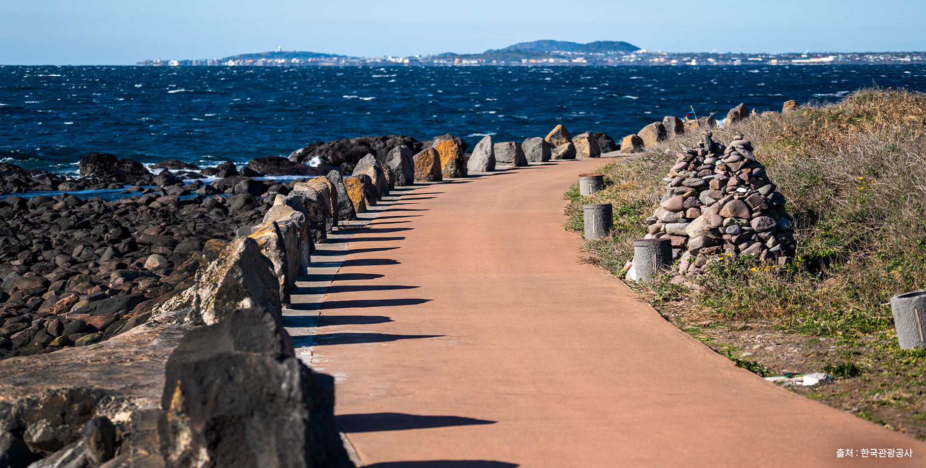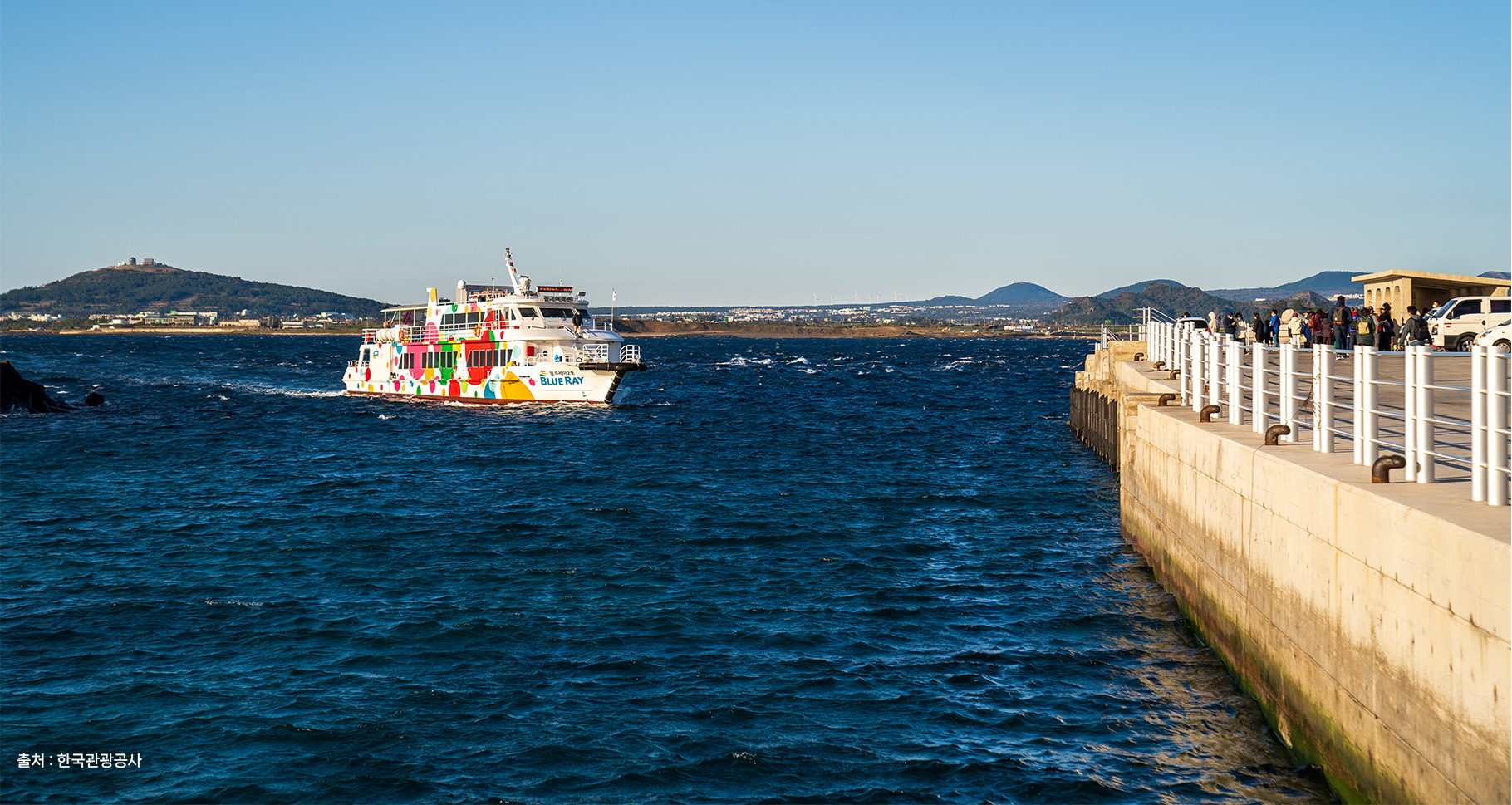 가파도까지는 10분 내외, 마라도까지는 30분 내외가 소요됩니다. 가파도는 청보리가 예쁜 4,5월에 관광객이 가장 많이 찾는 곳이고, 마라도는 국토최남단이라는 상징성 때문에 1년 내내 관광객의 발길이 끊기지 않는 곳입니다. 두 곳 모두 전혀 오염되지 않은 아주 예쁜 바다를 보실 수 있습니다.